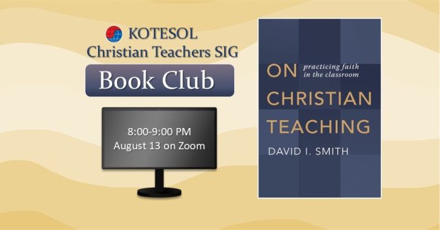 The Christian Teachers SIG Book Club will meet from 8 to 9 PM on August 13 to discuss chapter 6 of On Christian Teaching by David I. Smith.
