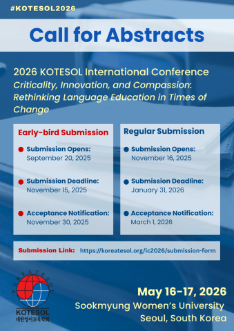 SUBMIT HERE: https://koreatesol.org/ic2026/submission-form
